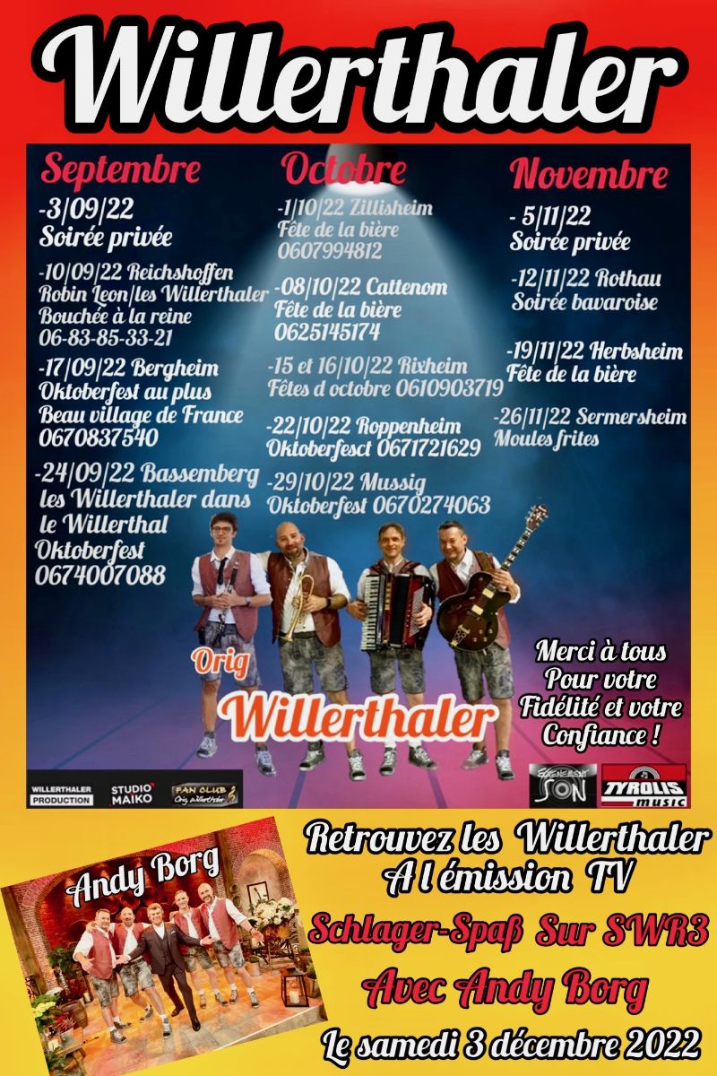 Pour tous renseignements, informations ou réservations: 06 29 58 18 29 - willerthaler@free.fr
